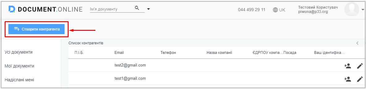 Натисніть кнопку «Створити контрагента», щоб створити нову картку.