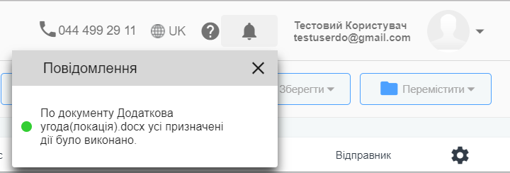 При змінах по документах у системі в режимі реального часу будуть з’являтися повідомлення біля дзвіночка, що розміщений у верхній частині екрану: